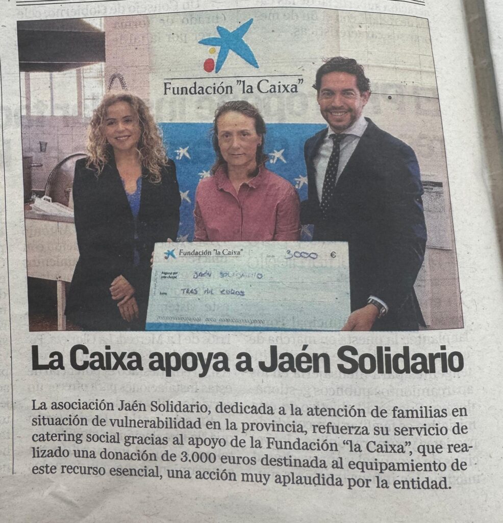 La asociación Jaén Solidario ha reforzado su servicio de catering social gracias a la colaboración de la Fundación la Caixa, que ha realizado una donación de 3.000 euros destinada al equipamiento de este recurso esencial para la atención de familias en situación de vulnerabilidad en la provincia.